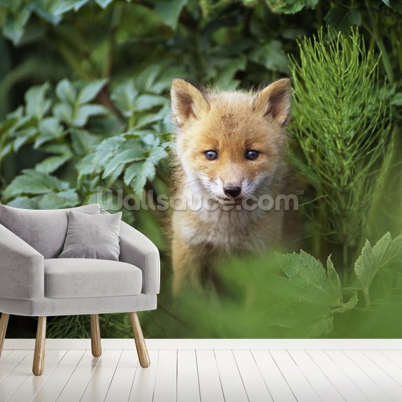 Kit Red Fox Peering Through Bushes Wall Mural Wallsauce De