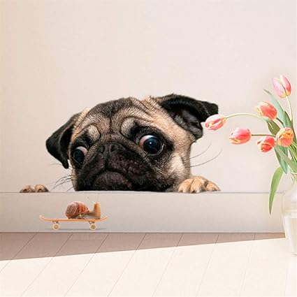 Lnlyin 3d Pug Dog With Snail Stickers Cartoon Funny Pet Animal